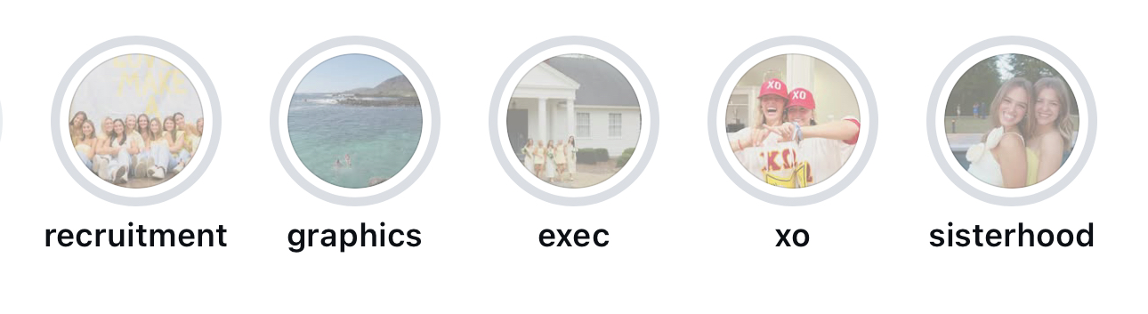 For our Instagram highlights, we wanted to create a clean, cohesive look that would enhance the first impression of our feed. By using consistent icons and colors aligned with Chi Omegaโs brand, we ensured the highlights were visually appealing while making key information easy to navigate.